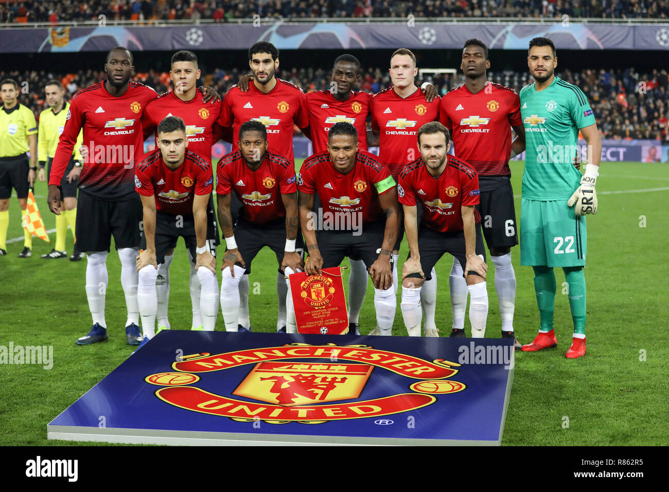 Valencia Espana 12 Dec 2018 Diciembre 12 2018 Valencia Espana Los Jugadores Del Manchester United Posan Para Una Foto De Equipo Antes De La Final De La Uefa Champions League
